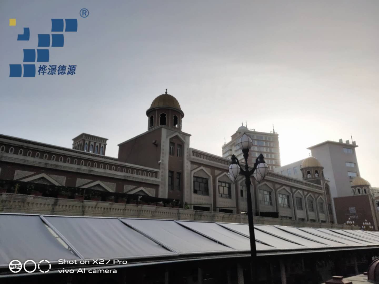 恭賀:樺澋德源智能遮陽節(jié)能科技有限公司承建的新疆國際大巴扎美食街采光頂戶外電動天幕簾項目工程順利完工。